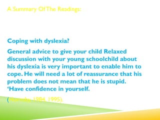 9+ Overcoming Dyslexia Chapter Summaries